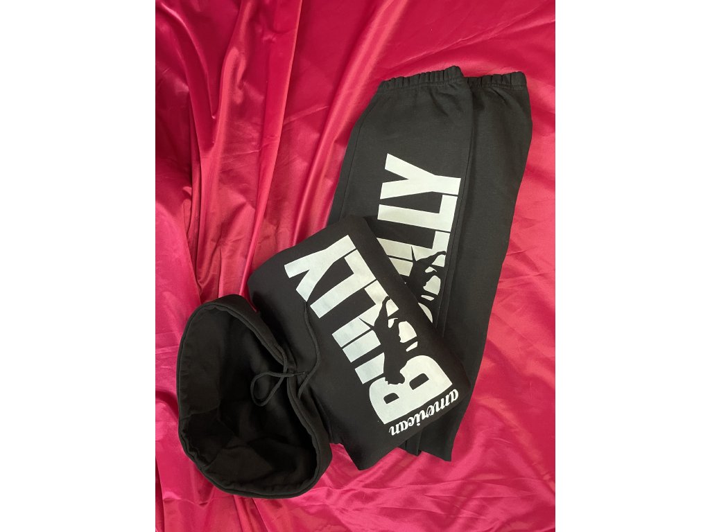 Černá mikina a tepláky spolu tvoří dokonalý pár na zimu.